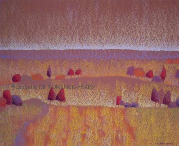 « Les trois petits arbres rouges », pastel sec, cadre 80 x 60 cm