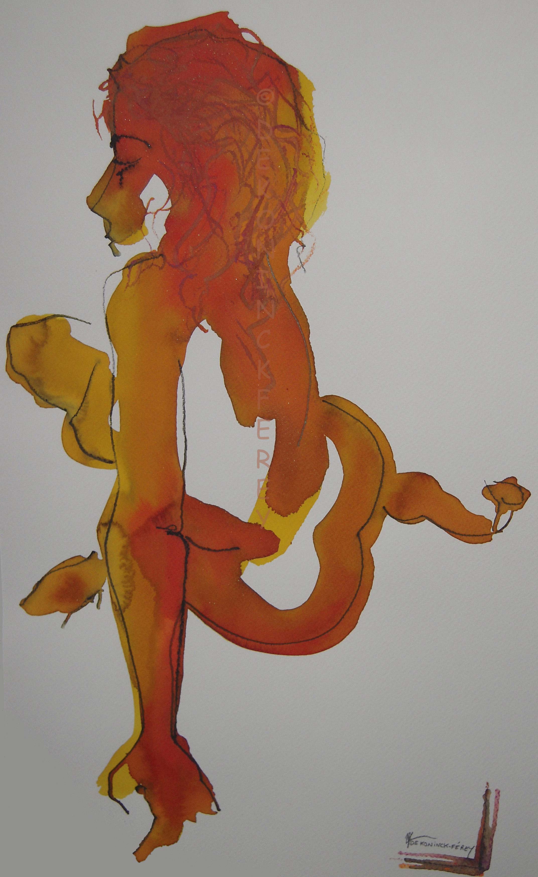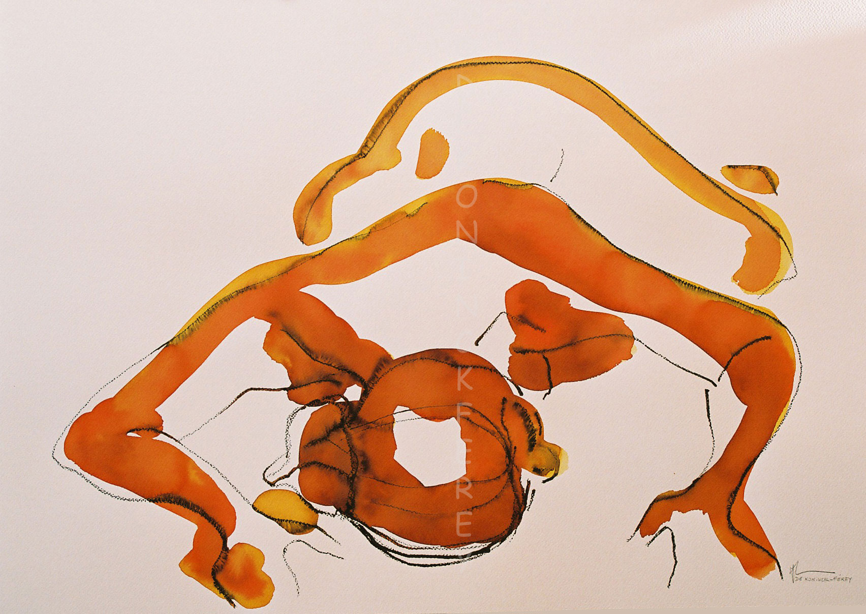 « Nu dans le cadre orangé », encre et crayon 30 x 40 cm