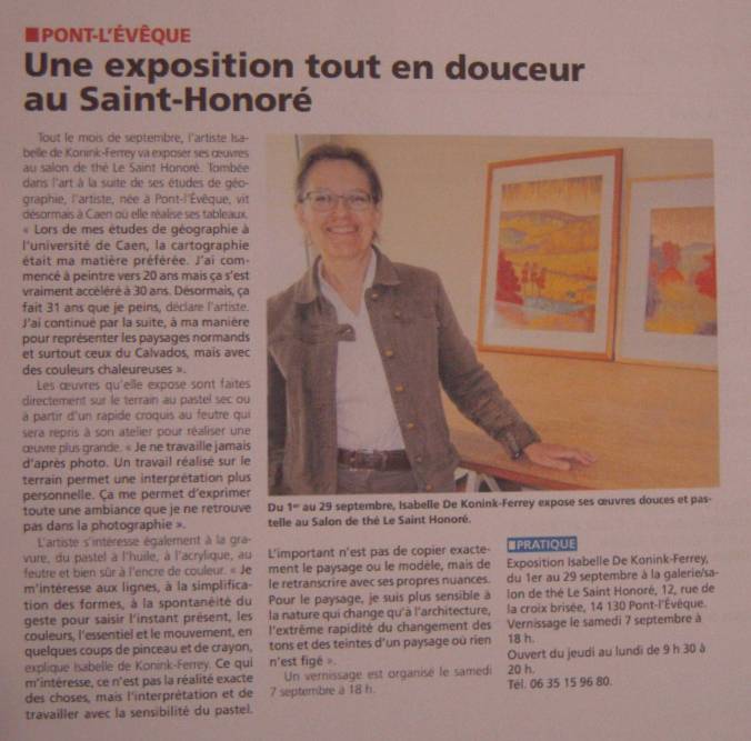 Pour l’exposition de l’association Contre courant d’Honfleur du 16 au 23 avril 2015, voici l’article paru dans le journal Ouest-France du 21 avril :